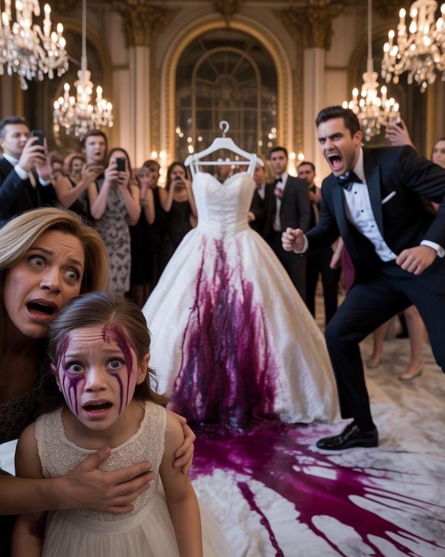 My mother crossed her arms triumphantly, as if her outburst were justified. As if striking a child in front of two hundred people were reasonable. She didn’t even look at Lily — only at the bride’s dress, now stained by a deep red mark on the lower tulle.