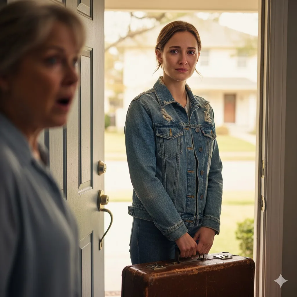 But when she opened the door and saw me standing there with my suitcase in my hand… her face didn’t show happiness.