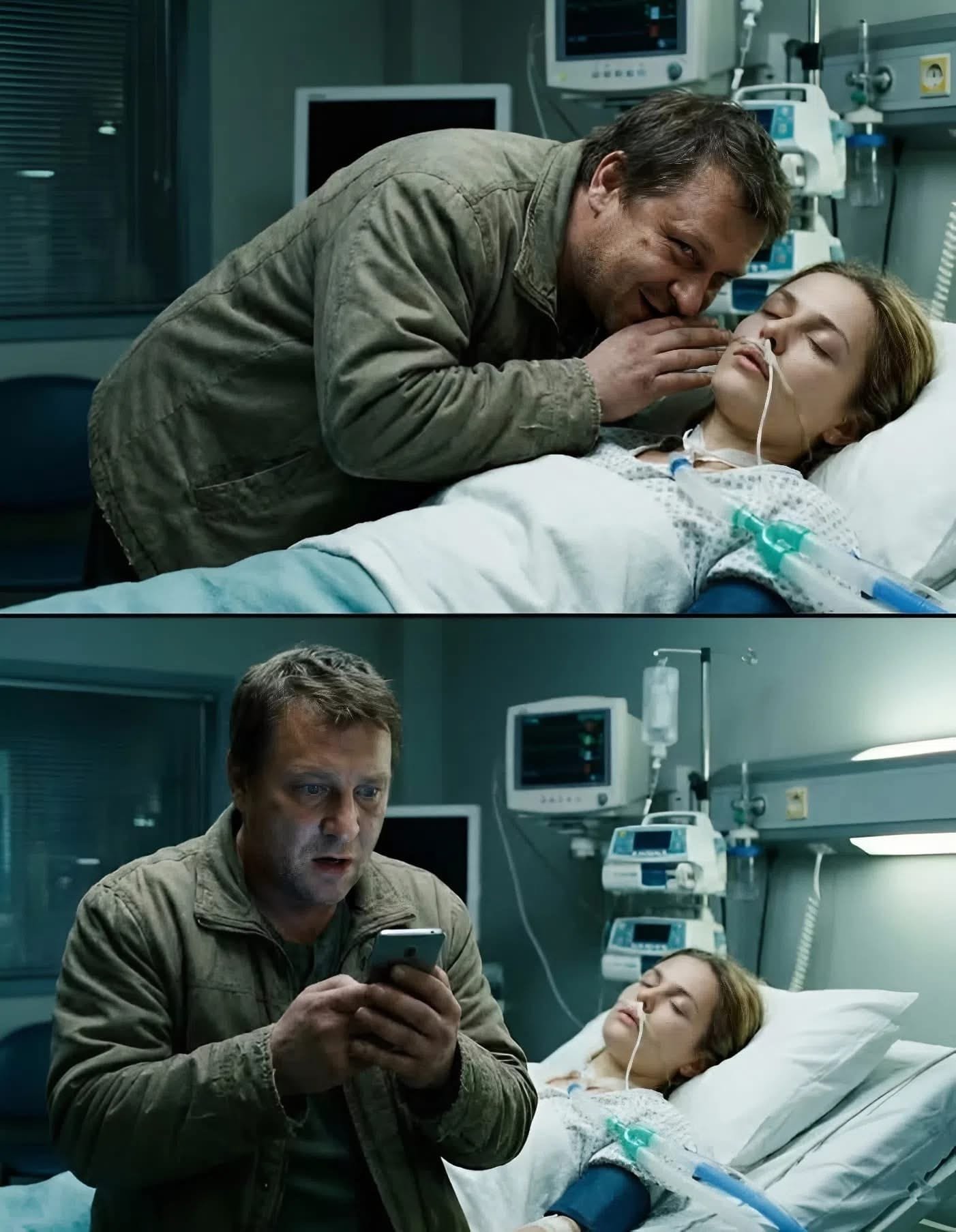 In front of the doctors, he put on a flawless performance of grief. His shoulders slumped, his head hung low, his sobs so convincing that a young nurse discreetly wiped away her tears.