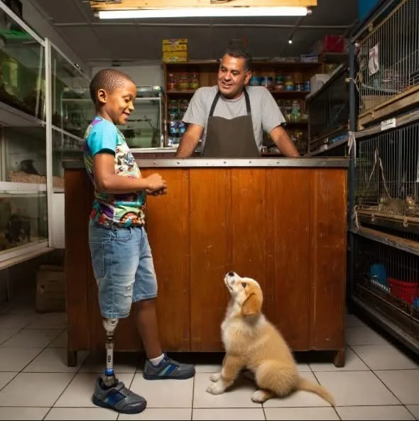 no more than ten years old, stepped into the small pet shop. He looked around with wide, excited eyes, taking in the shelves of food, toys, and tiny collars.