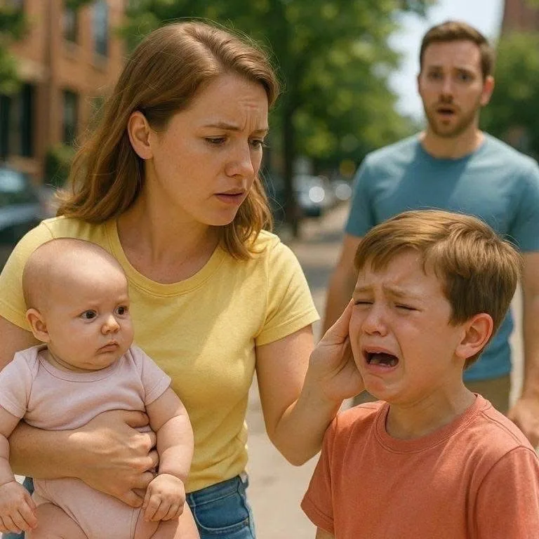 Across the road, she noticed a boy — no older than ten — standing alone, crying uncontrollably.
