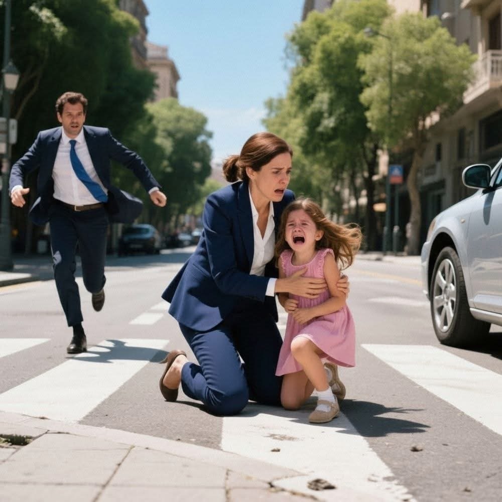 Her worn shoes slipped slightly on the wet asphalt, her heart pounding in her ears. She reached the girl and grabbed her arm, pulling her onto the sidewalk just as the truck screeched past.