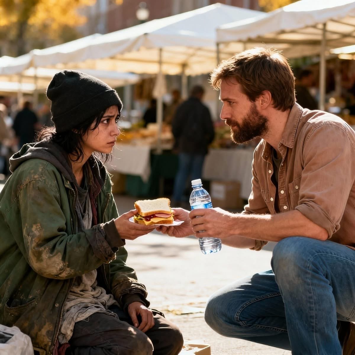 Sitting on the ground, curled up, clothes torn, hands gray from dirt and cold… but her eyes—there was a softness in them I hadn’t seen in years. Deep sadness, yes. But purity too.