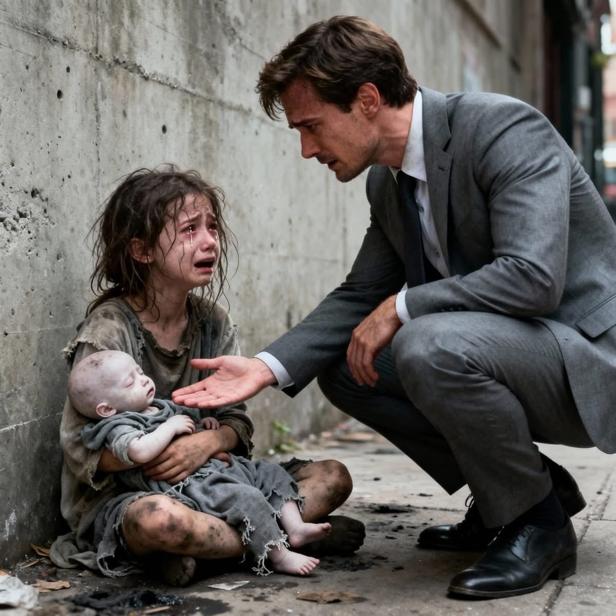 The little girl standing before him had her face covered in dirt, tear marks stained across her cheeks, and the look of someone who had already lost far more than any child should. But nothing hurt him as deeply as seeing that baby — so small, so fragile, so cold — in her arms.